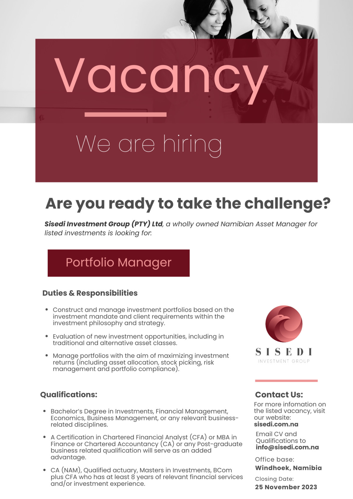 - Responsible for institutional and retail client servicing and retention using a good understanding of investment markets, company portfolios and views on the Namibian savings landscape
